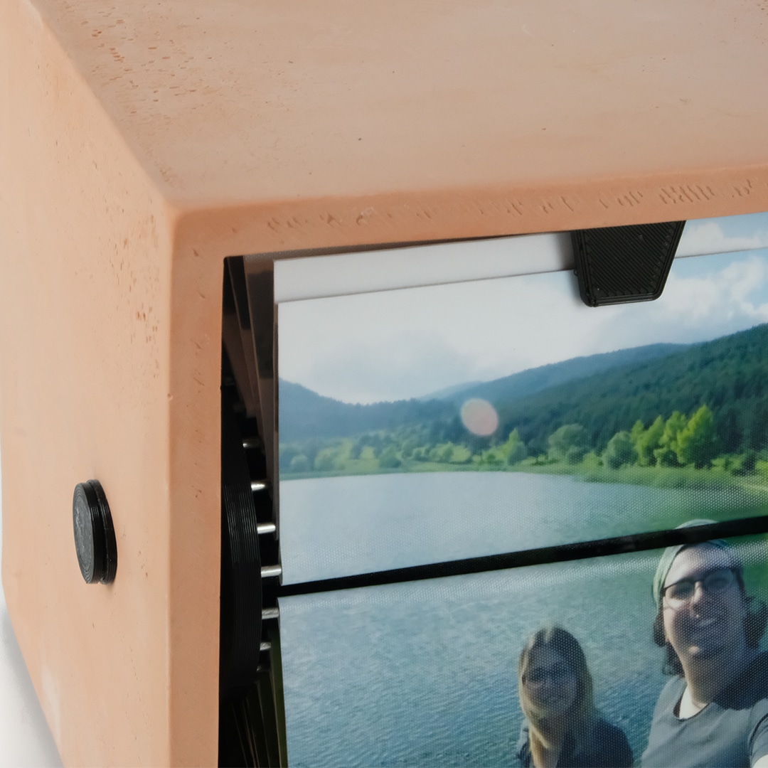 - Malzeme: El Yapımı Beton Kutu (Kinevizyon model harcıyla üretilmiştir.), Alüminyum, Biyoplastik